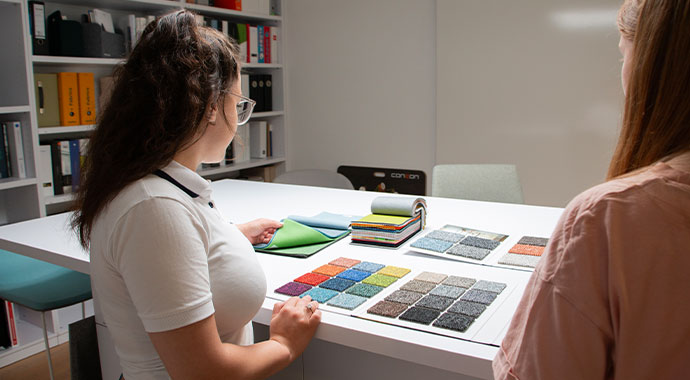 All materials and fabrics are harmoniously brought together in a “look & feel” presentation and then presented and discussed in a subsequent sampling session. The design concept is the basis for further 3D planning.
