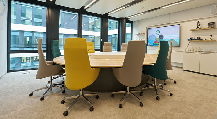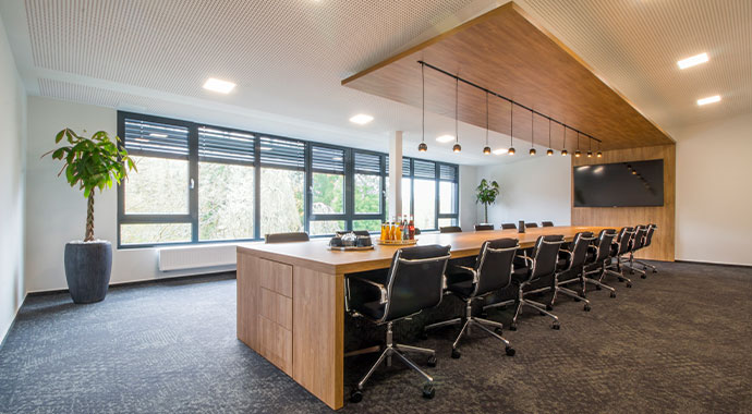 When planning conference rooms, attention should be paid to providing sufficient space for participants, appropriate lighting and good acoustic insulation. The seamless and unobtrusive integration of technologies such as video conferencing systems and presentation technology is also important.