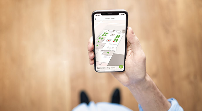 Um die Organisation des Arbeitsplatzmanagements zu erleichtern, bieten wir Ihnen eine Buchungssoftware an, die das Desksharing zum Kinderspiel macht. Der Mitarbeiter bucht seinen Arbeitsplatz über die Buchungssoftware – zum Beispiel mit dem Smartphone. Ganz einfach und von überall. In dem interaktiven Grundrissplan sieht der Nutzer auf einen Blick, welche Tische und Räume zu welcher Zeit verfügbar oder belegt sind.