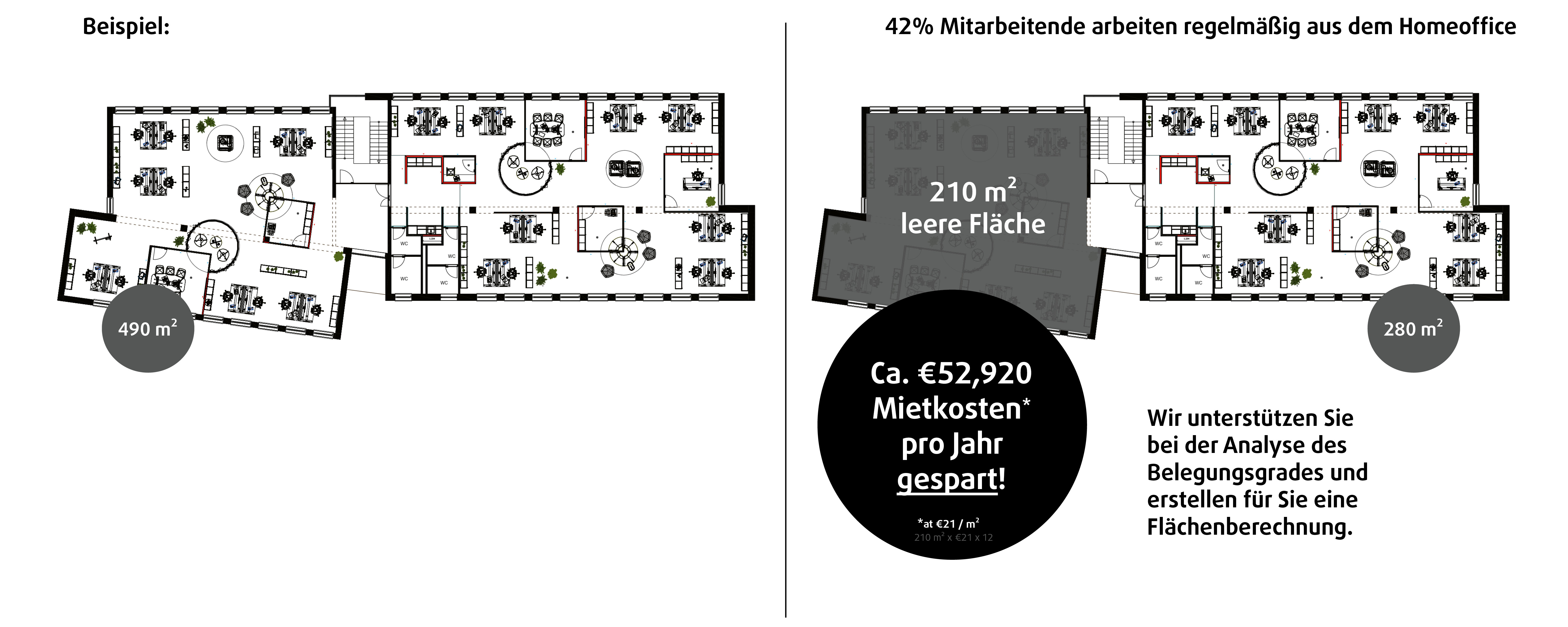 Durch ein strategisch geplantes Desk-Sharing-Konzept lassen sich Flächen effizienter nutzen, Leerstände vermeiden und Investitionen in Büroausstattung gezielt optimieren. Gleichzeitig bleibt die Arbeitsumgebung modern, flexibel und bedarfsgerecht. Eine fundierte Analyse des Belegungsgrades bildet die Grundlage für eine wirtschaftlich sinnvolle Flächenberechnung. So wird Desk Sharing zu einem zentralen Instrument für Kosteneffizienz und zukunftsfähige Büroplanung.