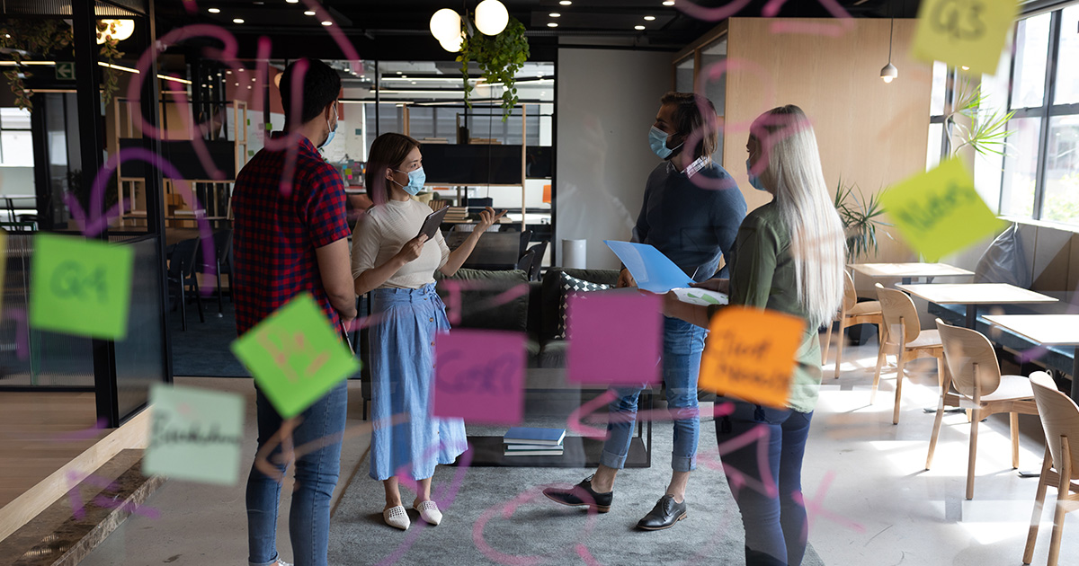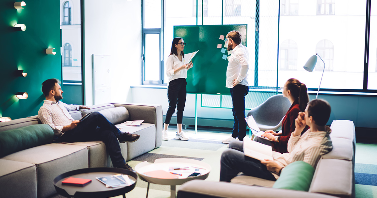 Große Ideen entstehen immer im Team und im direkten Austausch. Daher braucht es die Möglichkeit zur Kollaboration und Zusammenarbeit. Und weil Videokonferenzen und virtuelle Meetings das nur bedingt ersetzen können, braucht es offene Bürolandschaften und Räume für den persönlichen Austausch.