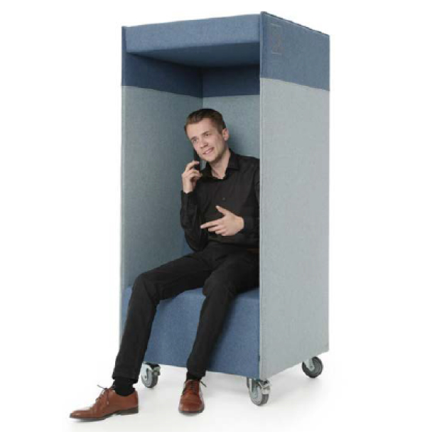 Phone Points bieten in einem offenen Büroraum die Möglichkeit, an einem geschützeren Ort in Ruhe zu telefonieren. Auch wenn die abgerundeten Telefonplätze offen sind, bieten sie ein Stück Privatsphäre.