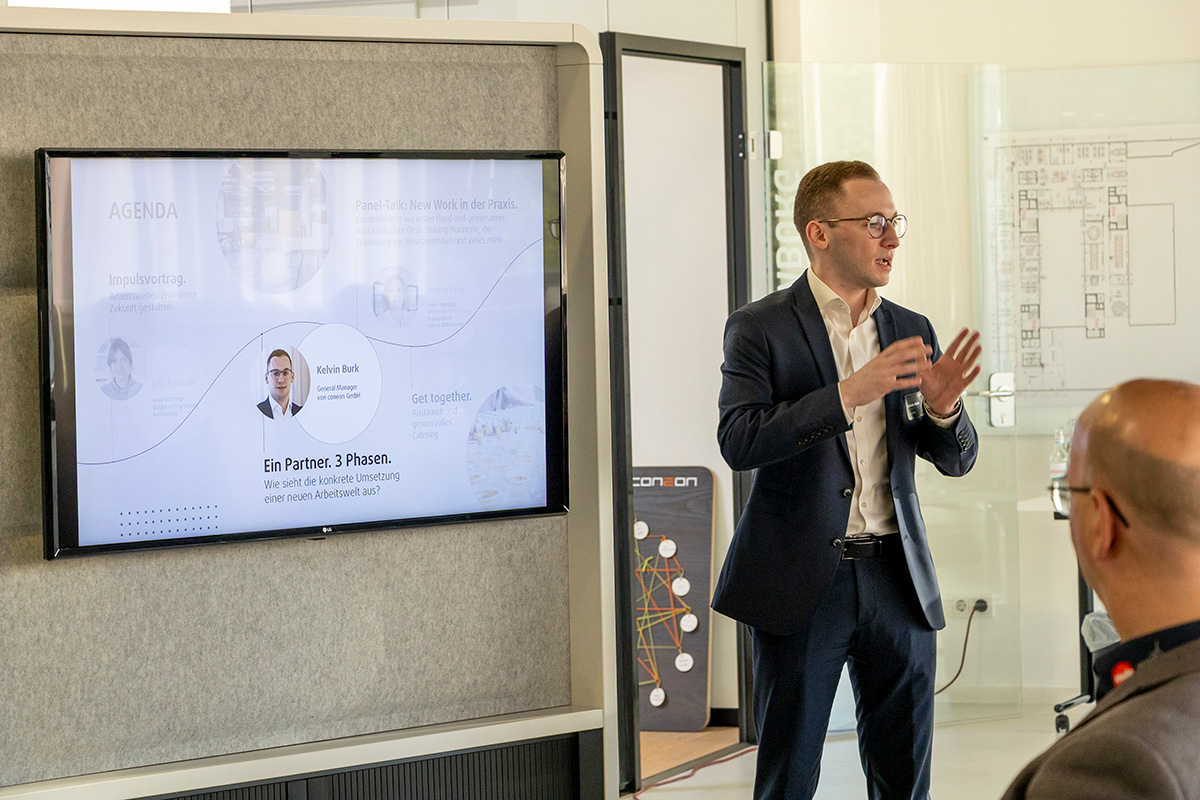 Kelvin Burk, General Manager von coneon, gestaltet die Arbeitswelten von morgen. Mit einem ganzheitlichen Ansatz entwickelt coneon moderne, nachhaltige und flexible Bürokonzepte. Als Moderator des Events wird Herr Burk Sie begrüßen und durch den Abend führen.